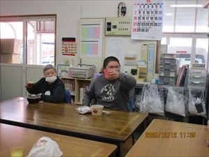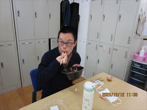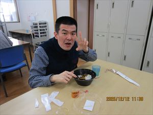 食べた後は、「がんばった事」を一人ひとり発表しました。「お給料をたくさんもらえるように頑張る!」、「休まないように出勤する!」など来年に向けての意気込みも発表していました!素晴らしいです👏これからも頑張りましょう。