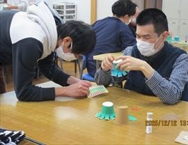 休憩後はみなさん待ちに待った「クリスマスツリー作り」です!