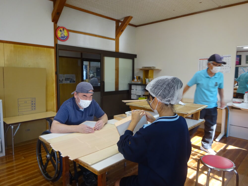 地域の中学生の職場体験 2025.10.06 ほほえみ 学校の授業で、10月2日3日とほほえみに来て、お手伝いをしてくれました。 急ぎの作業があった日なので、とても助かりました。最後には、新聞紙のバックの作り方を教えてくれました。ユーチューブで調べたりして、わかりやすいように説明してくれました。すばらしい!! 皆さん真剣です。ありがとー💛いたってフツーに、自然に、ほほえみの方とお話をして学校に戻っていきました。うれしかったです。この中学生が大人になって地元に残ってくれたら心強い応援団になってくれることでしょう。期待してます。