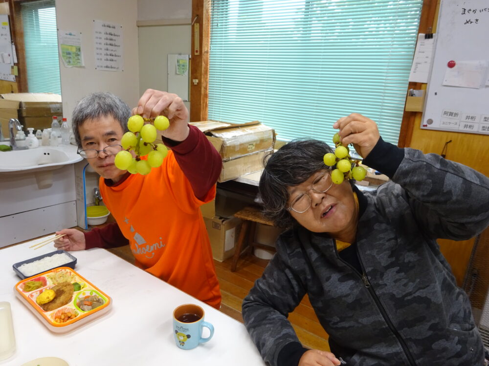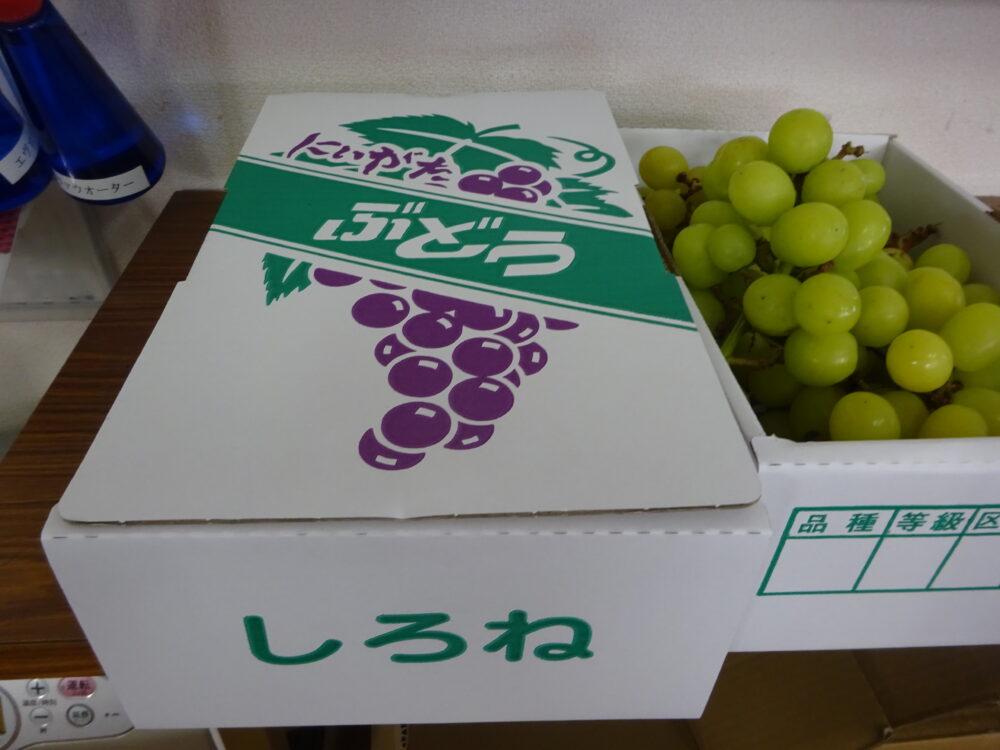 お付き合いのある業者さんがぶどうを持ってきてくださいました。10箱もいただいたので、GH、施設外就労先、とお裾分けしました。ほほえみとほのかで、皆さんと喜んでいただきました。あしたのぶんもあるよ~   南区の永川サッシさん本当にありがとうございました。