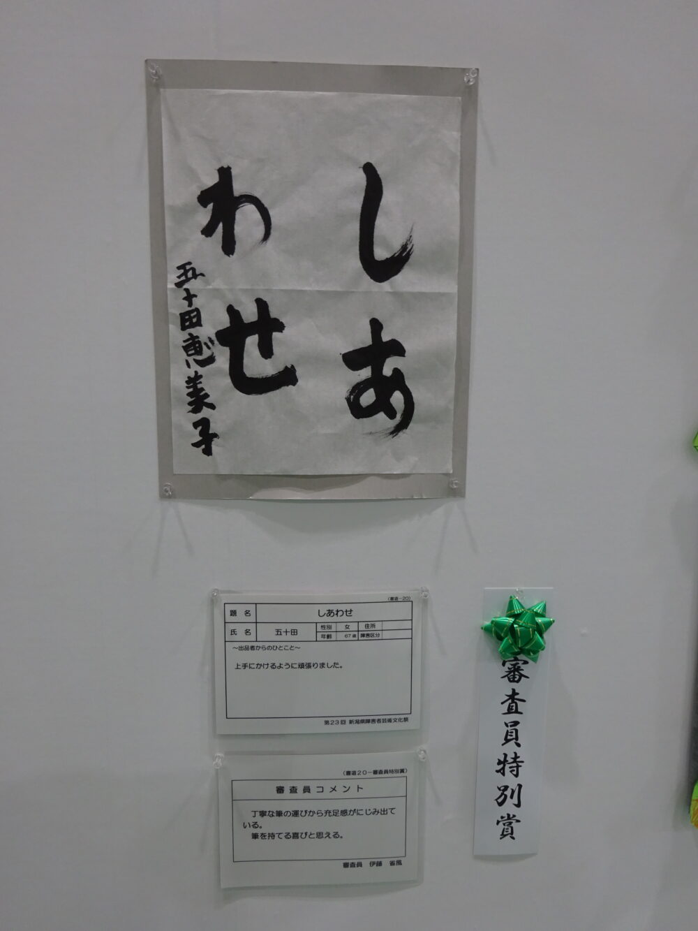 令和7年度 ふくらむアート 審査員特別賞をいただきました😂 2025.11.07 ほほえみ 今年も頑張って作品を作りました。4班に分かれて見学に行きます。 習字が審査員特別賞をいただきました。とても天気が良くて、良い知らせにぴったりな天気です。 丁寧な筆の運びから、充実感がにじみ出ている。と審査員よりコメントをいただきました。 ほのかは、合作しました。それぞれにいい顔して見学してました。11月9日まで開催しています。ぜひご覧ください。ほほえみやほのかをはじめ、皆さんのキラキラが詰まった作品展です。