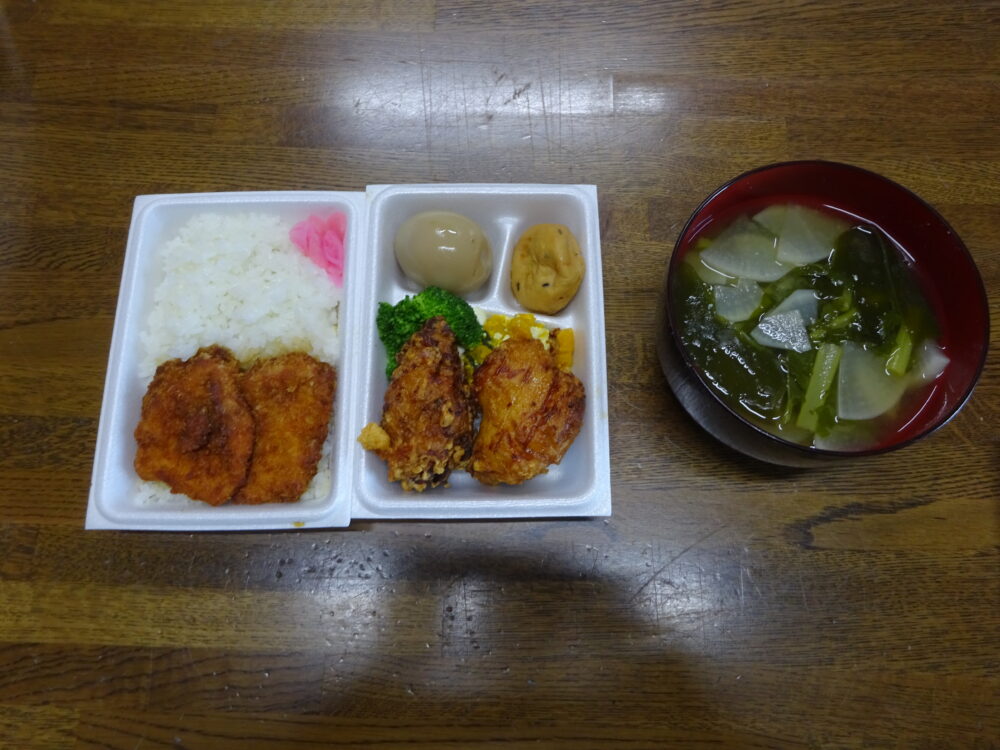 から揚げ弁当食べたくて、土曜日も作業するんだ。と言う利用者もいました。こらこら、お野菜も取ろうね。としらはすが掘ってきた大根をおつゆにしました。